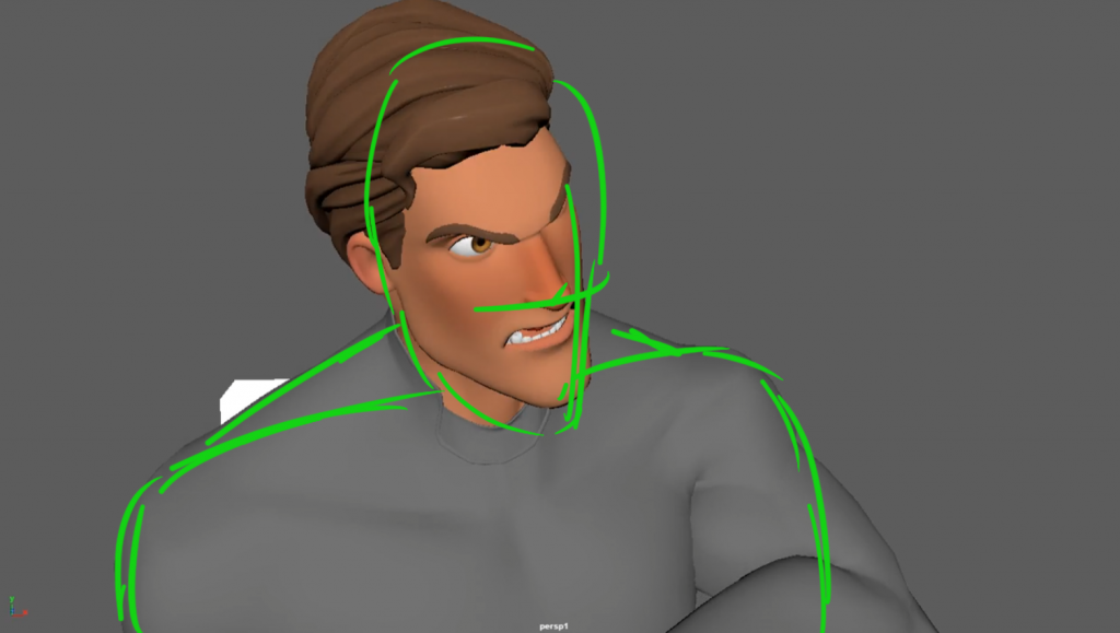 In natural motion, the nose should move along a smooth arc, which is determined by the joints function. This makes it important to pay close attention to arc design as early as the blocking stage, to ensure the motion looks natural.